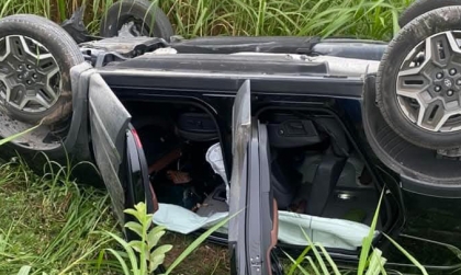 Một tai nạn được coi là… nhẹ nhàng khi chủ xe chỉ bị mất tiền trong khi những người ngồi trên xe chỉ bị thương nhẹ; chiếc Hyundai Santa Fe biển kiểm soát 30L 31825 không hiểu vì lý do gì đã mất lái, tụt chân rồi lật ngửa xuống ruộng.