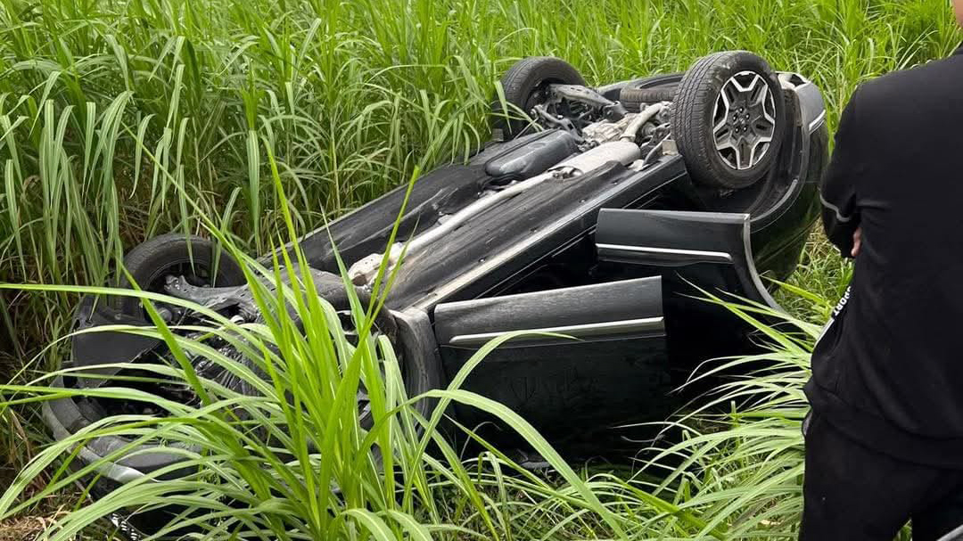 Ảnh TNGT: Hyundai Santa Fe mất lái "lộn cổ" xuống ruộng