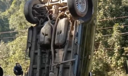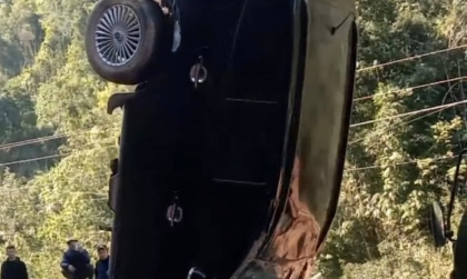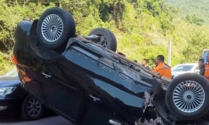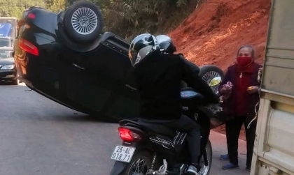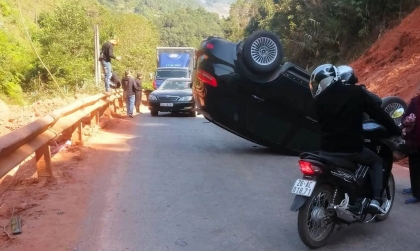 Tai nạn xảy ra trên quốc lộ 43 hướng từ cửa khẩu Loóng Sập về thị trấn Mộc Châu (Sơn La) khi dường như tài xế cầm lái chiếc Hyundai Santa Fe biển kiểm soát 30A 55125 đi đường đèo không quen nên đã lao xe xuống mương thoát nước, lật ngửa giữa đường.