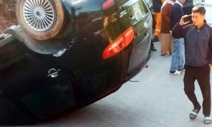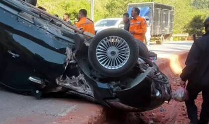 Ảnh TNGT: Hyundai Santa Fe "vào cua hỏng" lật ngửa giữa đường. Thế giới Phương tiện