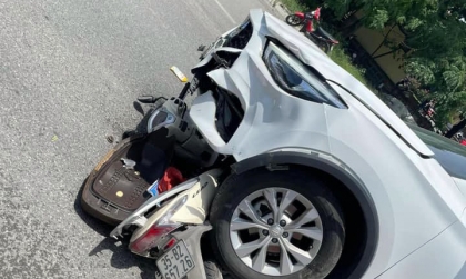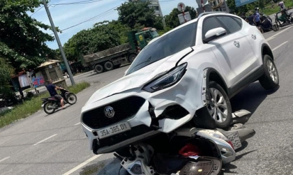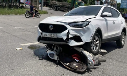 Ảnh TNGT: Qua ngã tư bất cẩn, MG ZS BKS 35A 38501 đâm thẳng người đi xe máy
