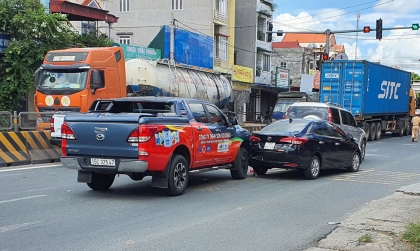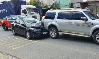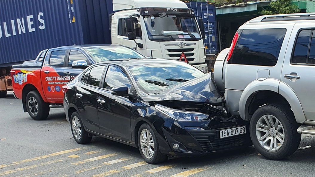 Ảnh TNGT: Tai nạn dồn toa khiến Toyota Vios lĩnh đủ