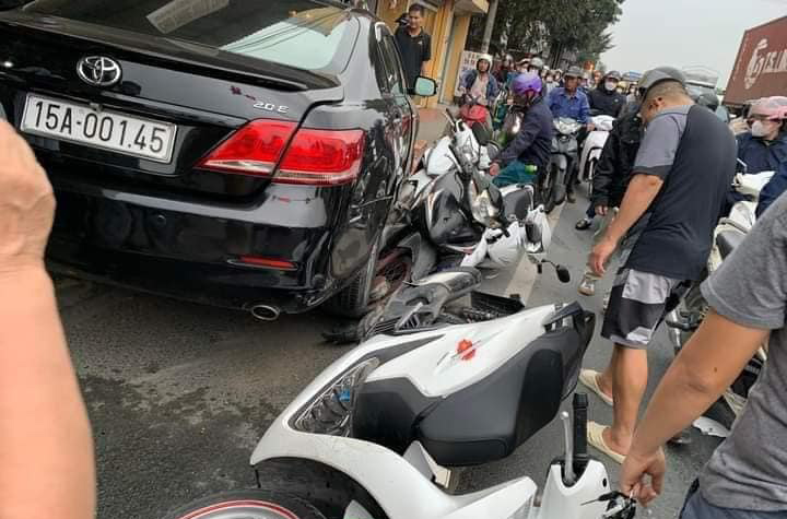 Tai nạn xảy ra tại Hải Phòng khi tài xế cầm lái chiếc Toyota Camry biển kiểm soát 15A 00145 không hiểu vì lý do gì, đã lao sang làn đường đối diện, đâm hàng loạt xe máy trước khi lao lên vỉa hè với một bên bánh trước gãy gục.