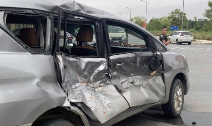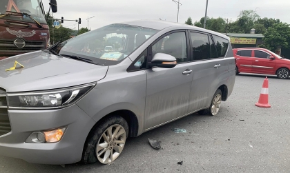 Ảnh TNGT: Toyota Innova bị đâm bẹp toàn bộ phần hông, xẹp cả hai lốp nhưng không thấy dấu hiệu của túi khí