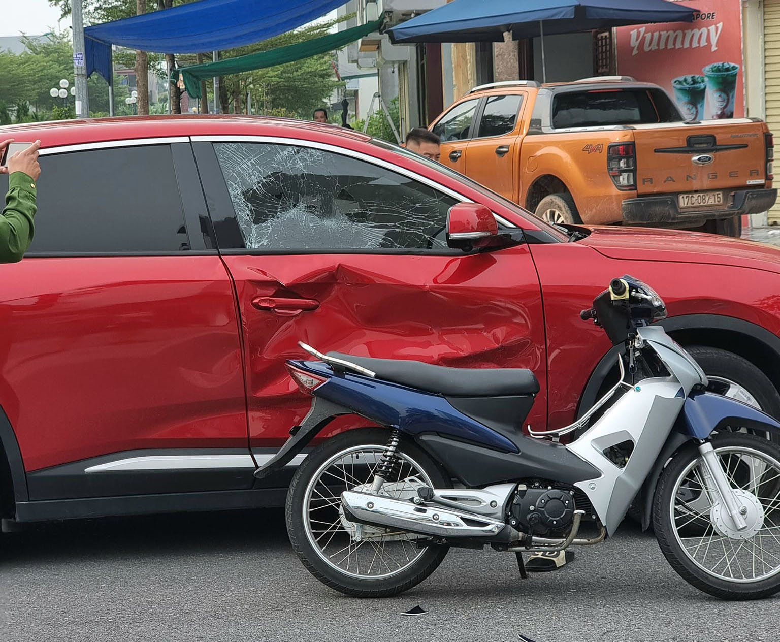 Ảnh TNGT: VinFast VF 8 bị xe máy thử độ cứng cánh cửa