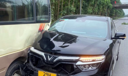 Tai nạn xảy ra trên đại lộ Thăng Long (Hà Nội) ngày 1/5/2024 vừa qua khi không hiểu vì lý do gì và bằng cách nào mà tài xế cầm lái chiếc taxi VinFast VF 8 biển kiểm soát 29H 93982 lại có thể đâm ngập vào đuôi xe khách 29 chỗ đi cùng chiều phía trước.
