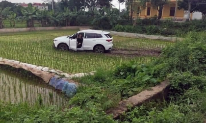 Cả một vạt mạ non mới cấy đã bị nữ tài xế trên chiếc Ford Territory biển kiểm soát 30K 12136 san phẳng. Dường như tài xế đã mất lái, không kiểm soát được tốc độ trong tình huống này nên đã lao thẳng xuống ruộng, rất may tai nạn này không để lại hậu quả nghiêm trọng liên quan đến tính mạng con người.