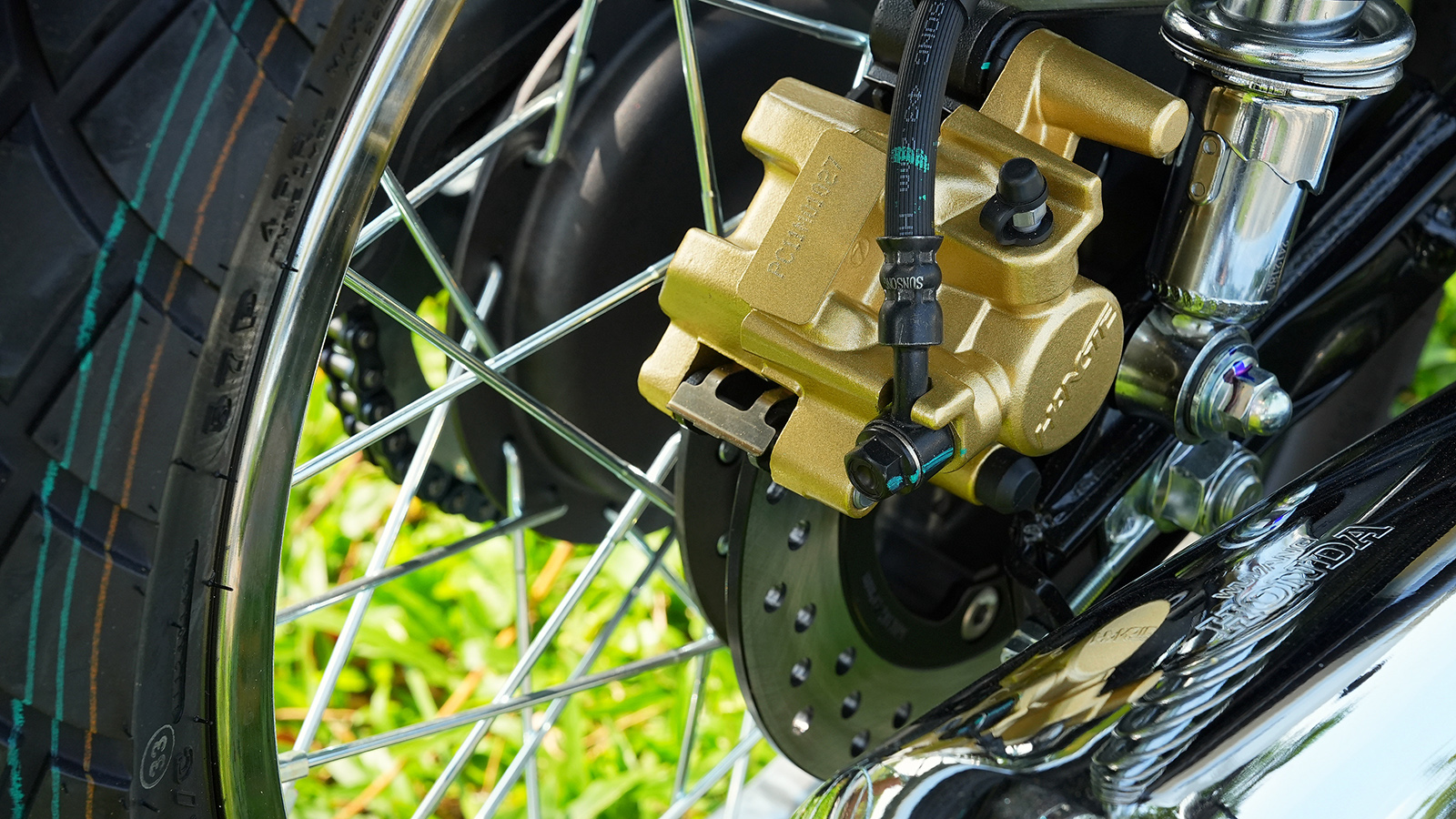 Chiếc xe này sử dụng giảm xóc ống lồng giảm chấn thuỷ lực cả trước/sau cùng bộ lốp có săm kích thước 90/90-17 ở phía trước, 110/80-17 ở phía sau.