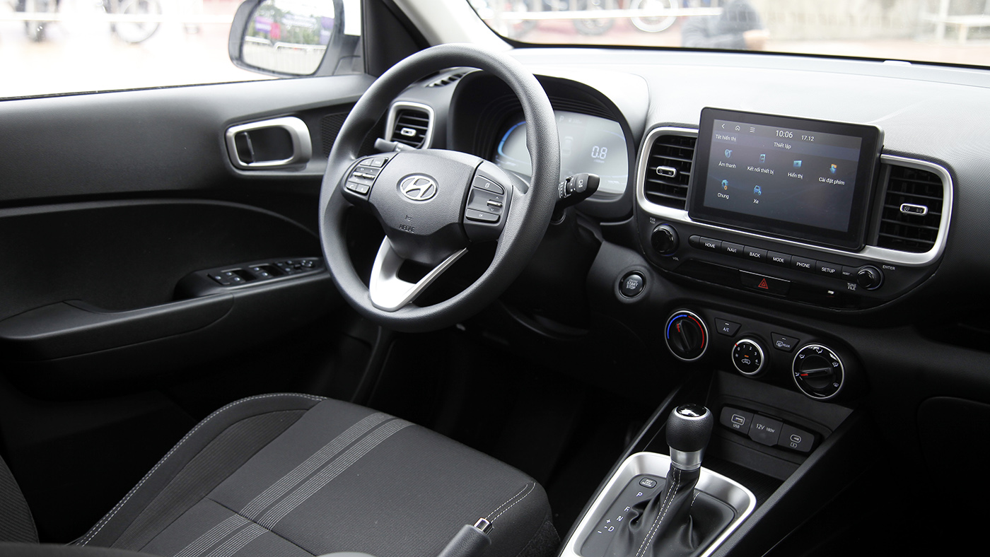 Bên trong xe, phiên bản Venue Đặc biệt sẽ có nội thất và tay lái bọc da, điều hoà tự động…, cho dù chất lượng không phải cao cấp nhưng rõ ràng là hơn hẳn phiên bản Tiêu chuẩn chỉ bọc nỉ.